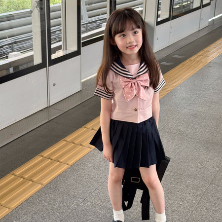 1*2下载“2634学院风jk蝴蝶结短袖粉色套装”图片包